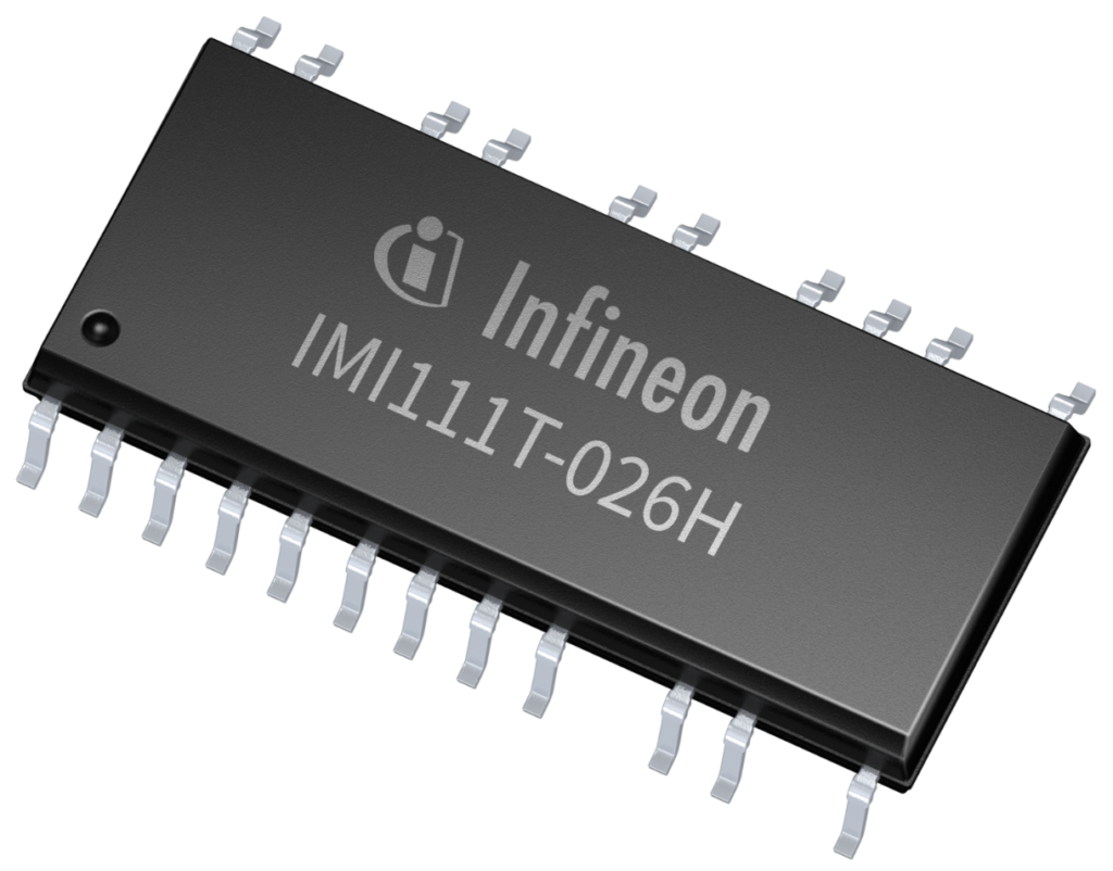 iMOTION™ IPM integrating motor controller, three phase gate driver and 600 V/2 A IGBTs in DSO-22 package.