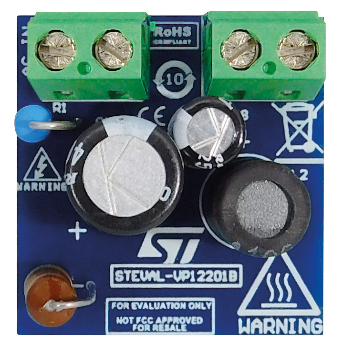 The VIPER122 converter embeds high-voltage start-up and current-sense circuitry, reducing the number of external components required in the power circuit.